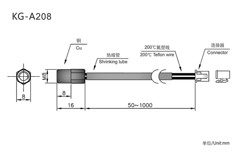 Standard NTC (Customizable):R25℃=100KΩ±1% B25/50=3950K±1%