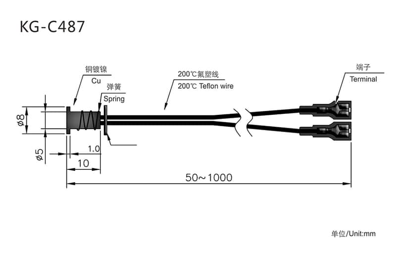 Standard NTC (Customizable):R25℃=100KΩ±1% B25/50=3990K±1%